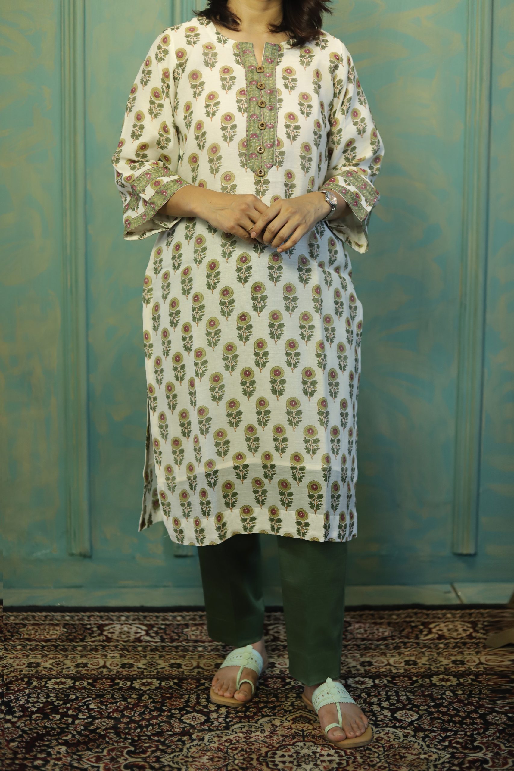🌿 Kurta: Designed in a straight-cut silhouette with floral printing (optional to specify), the kurta drapes gracefully and flatters every body type.